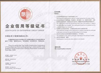 公司在學(xué)習(xí)實(shí)踐科學(xué)發(fā)展觀活動(dòng)中,切實(shí)加強(qiáng)信用管理,嚴(yán)格履行合同,優(yōu)質(zhì)安全文明施工,積極推進(jìn)技術(shù)進(jìn)步,自覺(jué)履行社會(huì)責(zé)任,取得了可喜的成效。近日,經(jīng)中國(guó)建筑業(yè)協(xié)會(huì)評(píng)定,公司獲評(píng)首批全國(guó)建筑業(yè)AAA級(jí)信用企業(yè)。