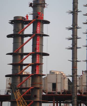 2009年8月26日下午8時(shí)許,四川大英縣盛馬化工股份有限公司1.5萬噸/年MTBE聯(lián)合裝置施工現(xiàn)場一片歡呼。由公司安裝制造分公司四川項(xiàng)目部承建的氣分-MTBE聯(lián)合裝置6臺主要塔器設(shè)備順利吊裝就位,為聯(lián)合裝置安裝工程奠定了完美的開端。