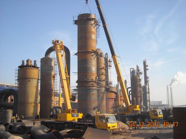 內(nèi)蒙古齊華礦業(yè)有限責(zé)任公司二期復(fù)合肥配套8萬噸合成氨項(xiàng)目,是入內(nèi)蒙不到兩年的內(nèi)蒙古分公司承接的第一個(gè)大化肥項(xiàng)目。最初的合同價(jià)是1000萬左右,經(jīng)過分公司領(lǐng)導(dǎo)的不懈努力和現(xiàn)場(chǎng)的突岀表現(xiàn),業(yè)主最終把包括造氣、脫硫、脫碳、變換、精脫、壓縮、醇烴化、氨合成、冷凍、循環(huán)水等幾乎全廠所有工段的安裝工作都交給了我方,估計(jì)最終的建安工作量將突破3500萬。由于該項(xiàng)目90%以上的設(shè)備都屬于“拆舊用舊”,因此施工難度很大。施工人員在正常安裝之前,需要對(duì)舊設(shè)備進(jìn)行檢測(cè)和修護(hù),還要?jiǎng)兂O(shè)備上厚厚的銹皮,給它穿上漂亮的“外衣”,又由于這些舊設(shè)備基本上都己找不到當(dāng)初的設(shè)備圖紙,參數(shù)不全,因此現(xiàn)在的設(shè)計(jì)工藝往往與設(shè)備對(duì)不上,很多地方都需要根據(jù)工藝流程現(xiàn)場(chǎng)來定位,更加大了我方的管理難度和工作量。
