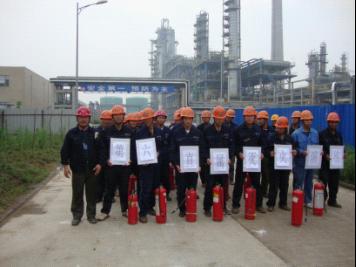 活動得到了建滔化工集團(tuán)(揚(yáng)州)置年石化有限公司的大力支持,業(yè)主質(zhì)安部詹建華主任、羅仁宏副主任不但為我們提供了活動場地和部分滅火器材,還親臨現(xiàn)場觀摩和指導(dǎo)工作。