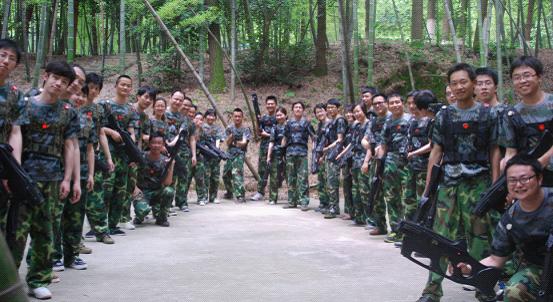 訓(xùn)練的第一個(gè)項(xiàng)目是鐳戰(zhàn)對(duì)抗。4個(gè)隊(duì)迅速組成兩個(gè)對(duì)抗的隊(duì)伍,經(jīng)過(guò)兩場(chǎng)激戰(zhàn),最終龍之隊(duì)和紅牛隊(duì)以飽滿的戰(zhàn)斗激情取得開(kāi)門(mén)紅。第二個(gè)項(xiàng)目為沼澤浮橋??简?yàn)團(tuán)隊(duì)協(xié)作和邏輯思維能力,每個(gè)隊(duì)伍利用三個(gè)油桶和兩塊木板,讓所有隊(duì)員一起通過(guò)一片沼澤地,整個(gè)過(guò)程只有油桶可以接觸地面,方法不限,所用時(shí)間最少者獲勝。尖兵隊(duì)和紅牛隊(duì)領(lǐng)先到達(dá)目的地。