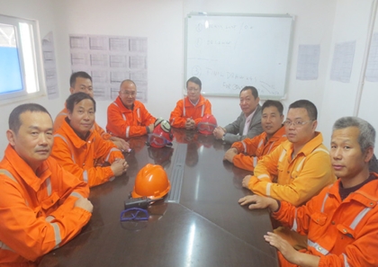 現(xiàn)場(chǎng)慰問(wèn)后,胡流芳來(lái)到業(yè)主辦公室進(jìn)行拜訪。業(yè)主施工總監(jiān)PINO先生見(jiàn)到胡流芳后非常高興。胡流芳對(duì)PINO先生致以中國(guó)新年的祝福并與他進(jìn)行愉快的交談。胡流芳感謝業(yè)主多年以來(lái)對(duì)公司的信任及幫助,把三期尾項(xiàng)消除及預(yù)試車(chē)項(xiàng)目交給公司,公司一定會(huì)從各方面給予大力支持,圓滿完成BP交給公司各項(xiàng)任務(wù)。